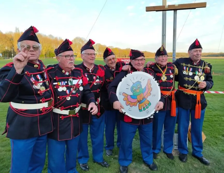 Door Ton Tonnaer – Schilberg: Het was Sef van Buggenum die, middels wat leek op een decoupeerkogel, de “vogel” het genade schot gaf. Meegenomen door de straffe wind vloog deze statig als een houtduif nog 10 meter door de lucht. Na het verwerken van de emoties en het wegwerken van enkele “blonde jongens” werd hij door beschermheer Jelle de Jonge geïnstalleerd als nieuwe Schutterskoning 2025. Het bleef daarna nog lang gezellig in het verenigingslokaal van schutterij Wilhelmina in Hingen.